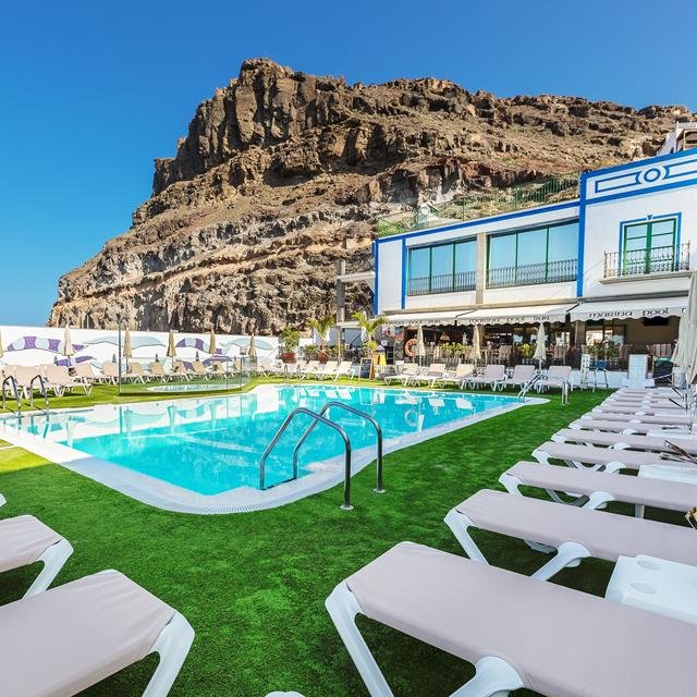 Voor een heerlijke, frisse duik is er een zwembad en om te ontspannen in het zonnetje staan er ligbedden klaar. Ga je graag naar het strand, via het bruggetje ben je zo op Playa de Mogán. Dit wordt een heerlijke vakantie!